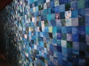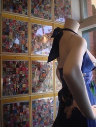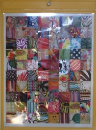 paper grids constructed from one-inch squares of pattern cut from fashion magazines and clear tape, inserted into 9x12 vinyl pockets and pinned into a grid on the wall