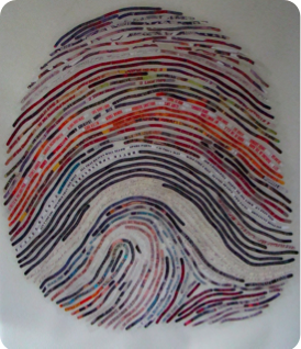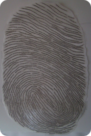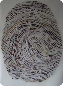 Please click on the photo to the left to read an article by Angela Carone, Arts & Culture Producer for KPBS, about her experience collaborating with me on her own thumbprint portrait!