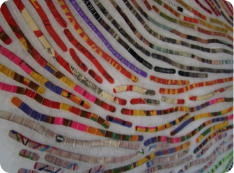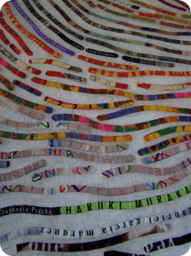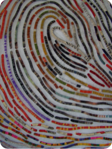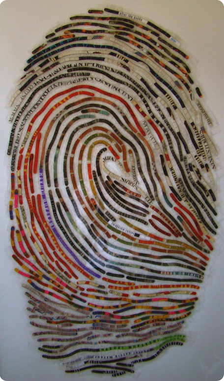 All that is needed for this portrait is a list of 15-20 of your favorite books! Other options could include using your children’s favorite books (and their thumbprints), even a list of favorite films, and using dissembled movie posters, song lyrics, cut from the liner notes of favorite cd’s, images and titles from cd or album covers, postcards/travel books/maps for the avid traveler.......). The possibilities are endless!