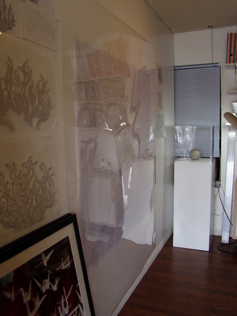 I had a studio visit from the owner of a gorgeous new gallery here in Encinitas today and so my studio is - for the first time in some time now! - beautifully clean. SO, I thought I’d take advantage and post a few photos of my work space, with some new works-in-progress and sketches in place to tease.......