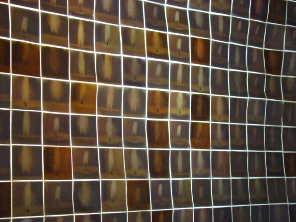 paper quilt constructed of three layers - two white, with candle flame images sandwiched between - of squares approximately 1 1/2” in size. the piece appears solid white when lit from the front, and the flames become visible only when the piece is backlit. this piece was included in two 9/11 memorial exhibitions - one at the photographic resource center in boston, and the other at the museum of photographic arts in balboa park in san diego. the piece is made up of 3,062 candle flame images, one for each of the people who lost their life on that day. the title comes from the edwidge danticat story by the same name, from the book of short stories “krik? krak!”, which inspired the piece.