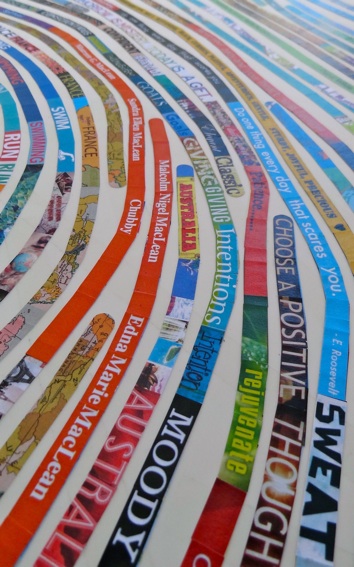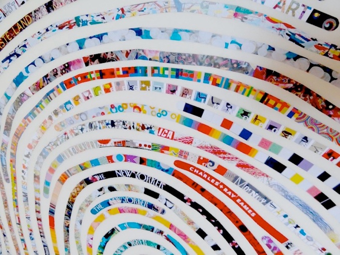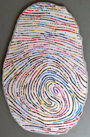 Thumbprint portraits use your own thumbprint to create a large (three feet high!), modern, colorful work of art that will be absolutely YOU. I will use your own thumbprint and recreate its unique patterns using snippets of imagery, text and color from your favorite things (you’ll provide a list and I’ll pore through and gather hundreds of images to best represent that list). Your favorites could include much-loved books, music, films, poetry, quotes, places traveled and lived and more. The result is a truly one-of-a-kind portrait that captures your personality and passions. It makes a wonderful gift for yourself or a loved one. A great way to do a unique family portrait - you could create one for each family member, or (like the one shown above!) use one family member’s thumbprint and incorporate the interests of all family members into one portrait.