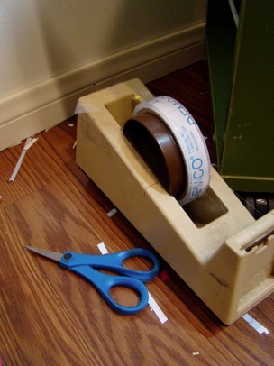 A shot of one of the pages cut into strips: And the tools of my trade: